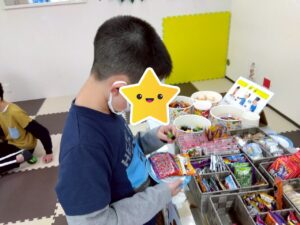 おもちゃのお金で20円、30円、50円のおやつの中から