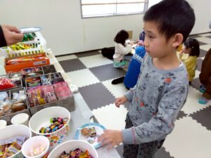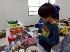 おもちゃのお金で20円、30円、50円のおやつの中から