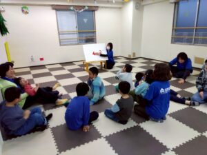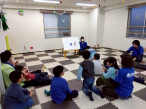 フロアにはみんなで作ったツリーやクリスマスの可愛い飾りが