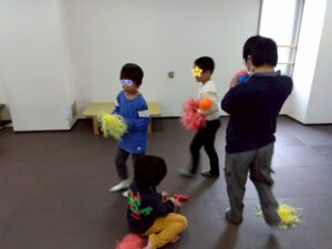ボール遊びやポンポンを振って体を動かしたり、