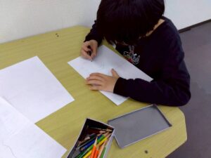 集中してお勉強中!がんばれ💪🏼          お絵描き中✍