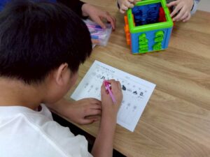 集中してお勉強中!がんばれ💪🏼          お絵描き中✍