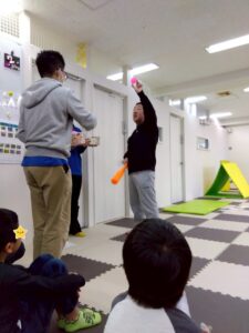 節分の紙芝居を聞いてみんなで鬼退治をして
