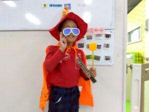 仮装をしてお菓子をもらいに行きました!トリックオアトリート!と上手に言えたね😊