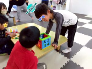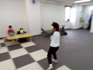 節分の紙芝居を聞いてみんなで鬼退治をして