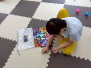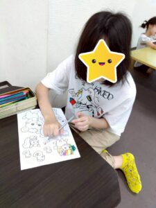 スライムやぬりえに取り組む児童もおり、みんな集中して楽しんでいました。