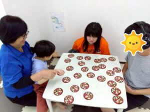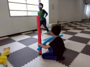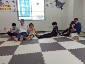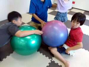 体を動かしたり座って遊んだりと