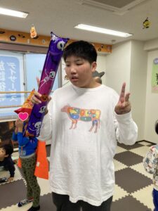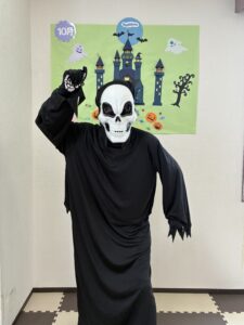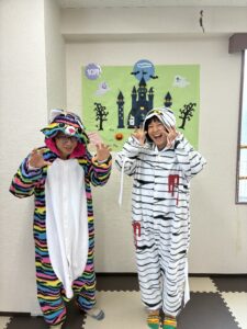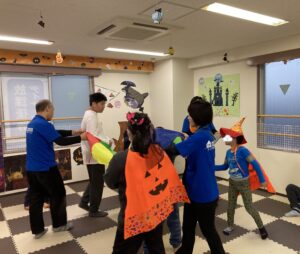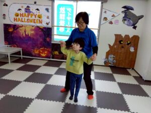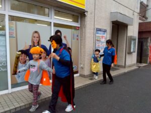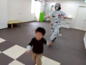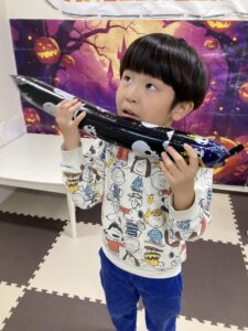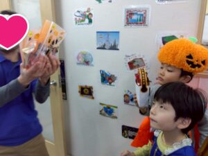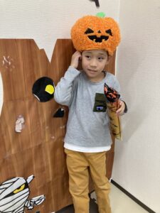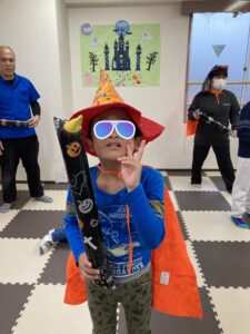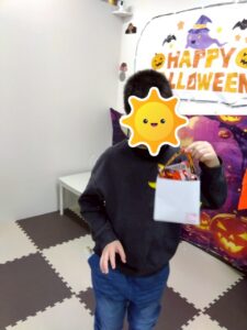 仮装をしてお菓子をもらいに行きました!トリックオアトリート!と上手に言えたね😊