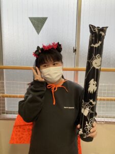 ハロウィンのスティックバルーンを持って楽しそう♬