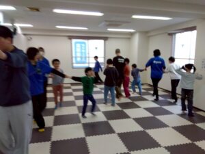 先生の動きをよく見て踊る子や、自由に踊る子など、それぞれの個性が光っていました。