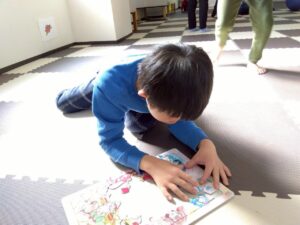 体を動かしながらお友だちとの関わりも深まり、元気いっぱいの時間となりました。