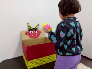 節分の紙芝居を聞いてみんなで鬼退治をして