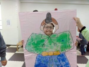 先週工作で子供たちが作ったお雛様とお内裏様に顔をはめて写真を撮りました。
