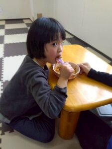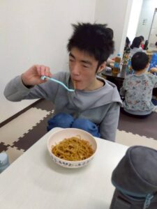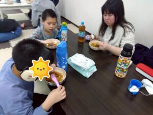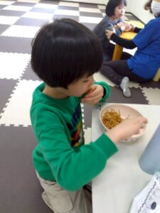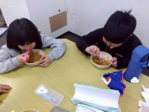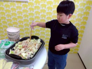 ソーセージや野菜を炒めるのを手伝ってくれた児童もいました。