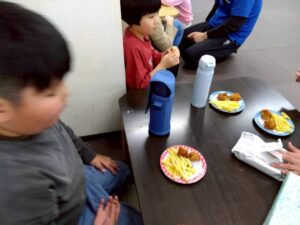おやつには、唐揚げとポテトフライを食べました😊