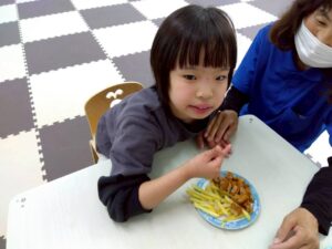 ソーセージや野菜を炒めるのを手伝ってくれた児童もいました。