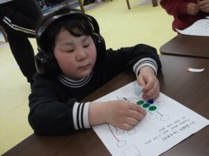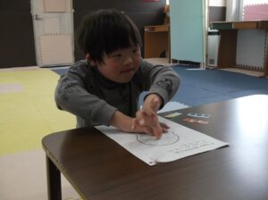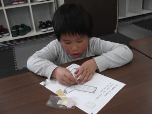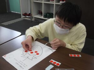 シール貼りや点つなぎの課題を