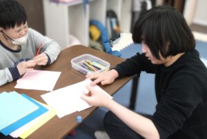 子どもたちは見本を見ながら