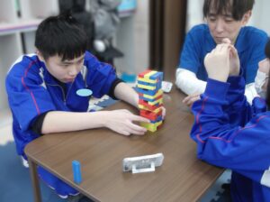 グラグラのジェンガに緊張の瞬間です👐