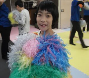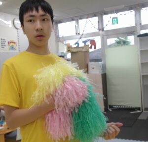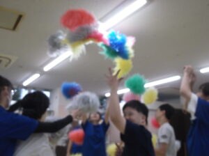 好きな色のポンポンを持って、