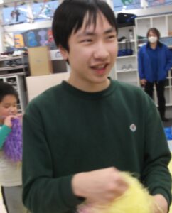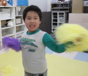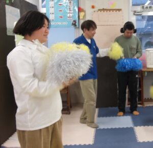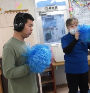 音楽が流れると自然にポンポンを上下左右に