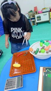 自然と役割分担ができ、数えやすく食材をまとめてくれるお友達や数え終わった食材を