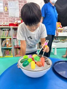 遊びながら、お箸の練習や手の運動ができ、楽しく焼き肉ゲームを行うことができました!