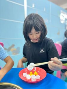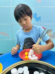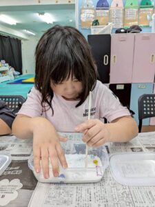 宝物を掘り出す過程で集中して手を動かすことで、遊びながら微細運動ができました。