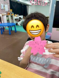 そして、そのお花には「新学期に向けての目標」や「これから頑張りたいこと」を書いてもらいました。「勉強をがんばる!」「掛け算をがんばる!」など、前向きな言葉がたくさん並びました✨