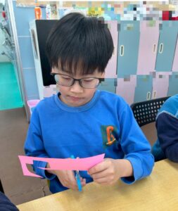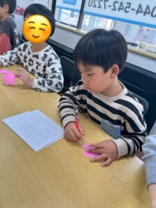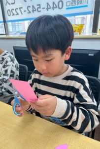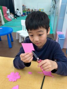 まずは桜の花や花びら作りからスタート!子どもたちはハサミを使って、思い思いの形に丁寧に切ってくれました。