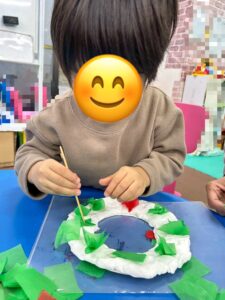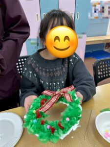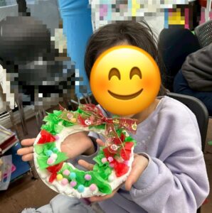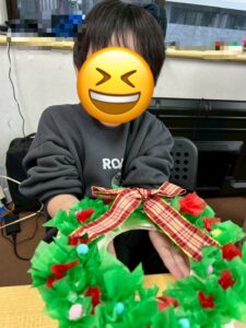 可愛らしいリースが出来上がりとても嬉しそうな子ども達でした。