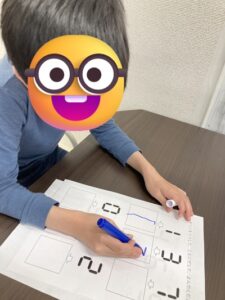 今日は個別療育の時間に、プリント課題と