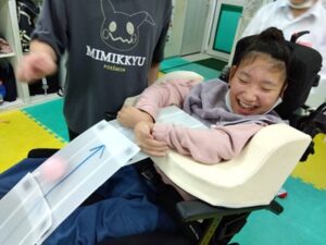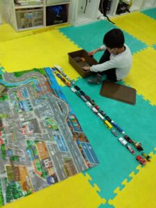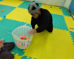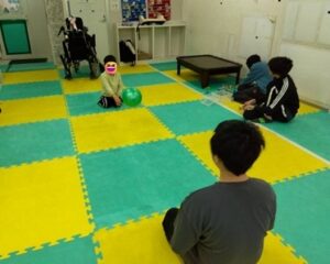 引き続き運動療育では、ペアになって床に