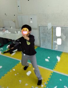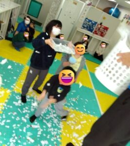 運動遊び「チーム対抗の紙吹雪