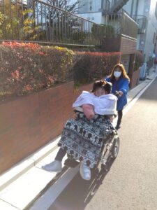 お散歩では、冬の風の冷たさを感じながらゆっくり歩き