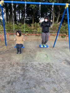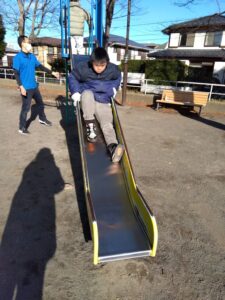 近くの公園までみんなでお散歩し、滑り台やブランコで楽しく遊びました!寒さに負けず、お友達と元気いっぱいに走ったりと笑顔溢れる時間となりました。