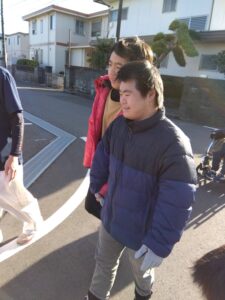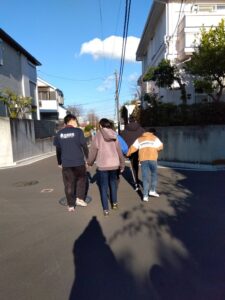 午前中はみんなで掃除をして、午後はお散歩をしました。