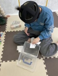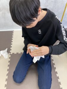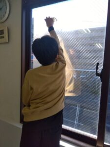 掃除では、窓ふきや、いつも使っているおもちゃをふきました。