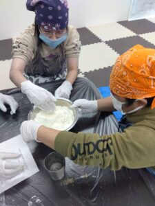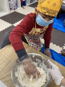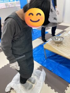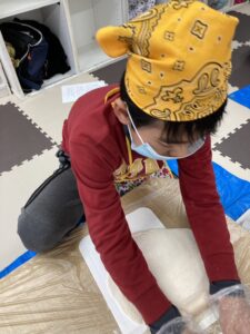 形が出来てきたら、生地を袋に移し1人1分程よく踏み、