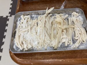 塩水を少しずつ粉に混ぜて力強くこねていきます。