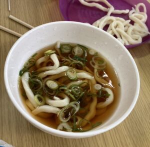 讃岐うどんの大事な工程は、うどん粉を踏むことです。