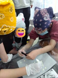 午後は冷やしたムースにみんなで砕いたクッキーや午前中に作った