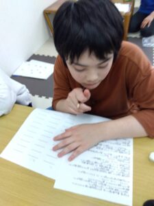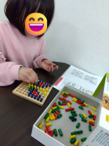本日は個別療育の時間に、プリント課題と現物課題に取り組みました。