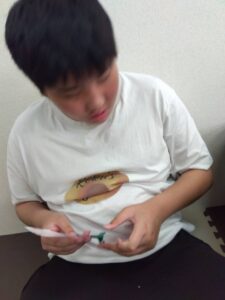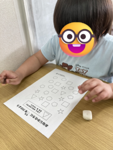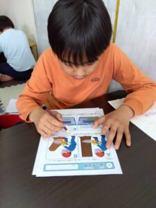 本日は個別療育でプリント課題と現物課題に取り組みました。