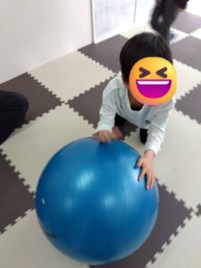 取りながら一緒に遊んだり、絵本やバランスボールなど