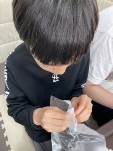 ビニール袋を開けて広げるなどの作業課題に