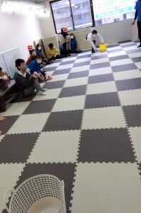 お友達とマットを迷路のようにして