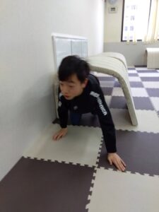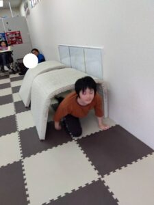 ②狭い空間をくぐることで、自分の体の動きを考えながら動く力(ボディイメージ)を養う
