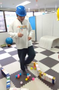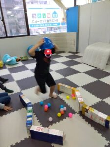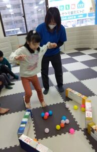 今週の運動療育は「たま運びゲーム」です。