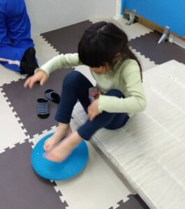 取りながら一緒に遊んだり、絵本やバランスボールなど